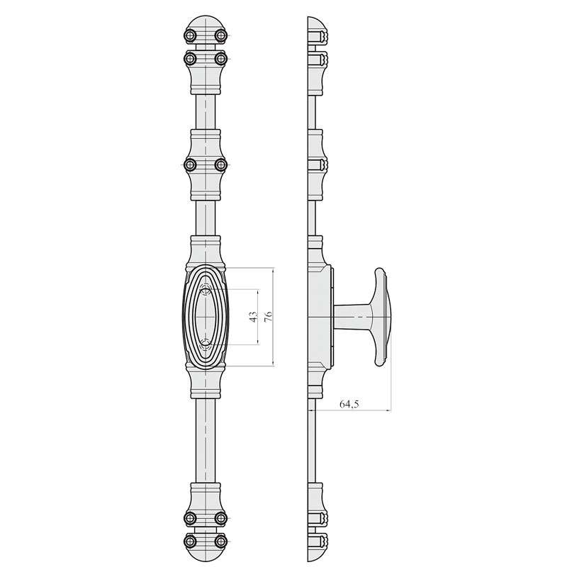 Fausse crémone décorative à bouton pour menuiseries PVC.