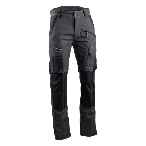CONFORT: Pantalon majoritairement en coton + ceinture réhaussée + zones de tension élastiquées dont l'entrejambe et l'arrière des genoux
